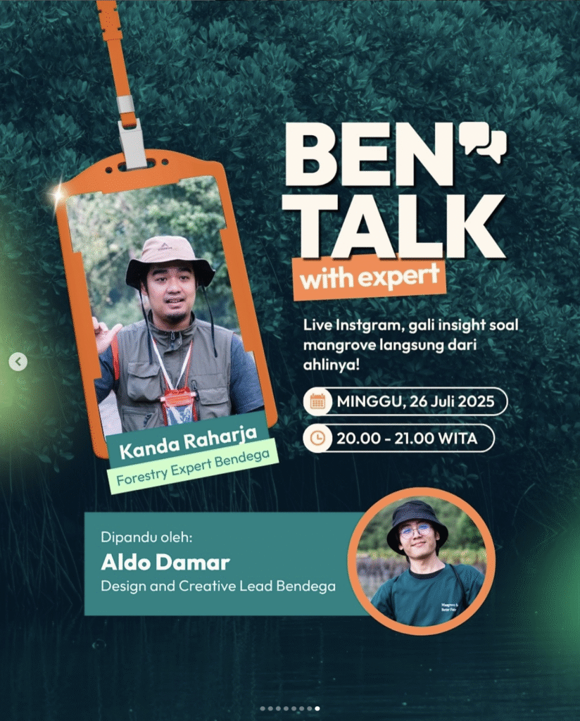 A lively Instagram Live series where Bendega hosts inspiring guests to dive into conversations about mangroves and other relevant issues.