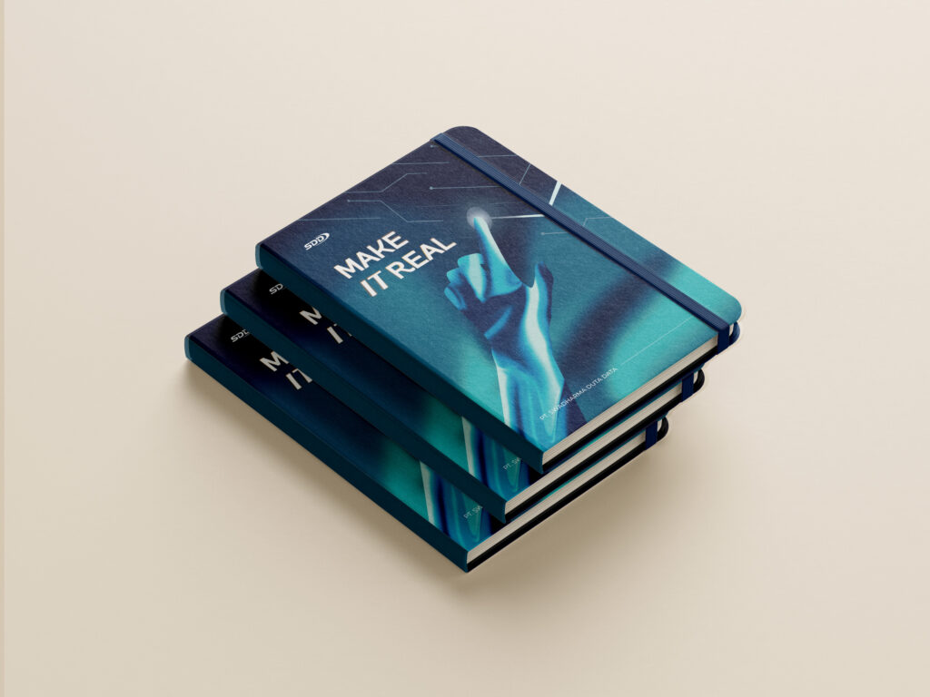 The concept of illustration adopts a futuristic style with a blue-toned color palette that evokes a sense of sophistication and advanced technology—reflecting SDD’s brand identity.